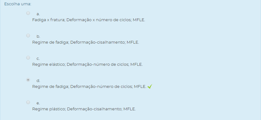 1) As falhas nos componentes ocorrem devido ao grande esforço que estes componentes estão expostos. Estes esforços, ao ultrapassarem o limite de resistência do material do qual é confeccionado este componente, gera o seu colapso. Este colapso tem seu inicio através de uma pequena trinca que cresce até que o componente rompa por completo. Ao se estudar a fundo a trinca, percebeu-se que existem três estágios na falha por fadiga.