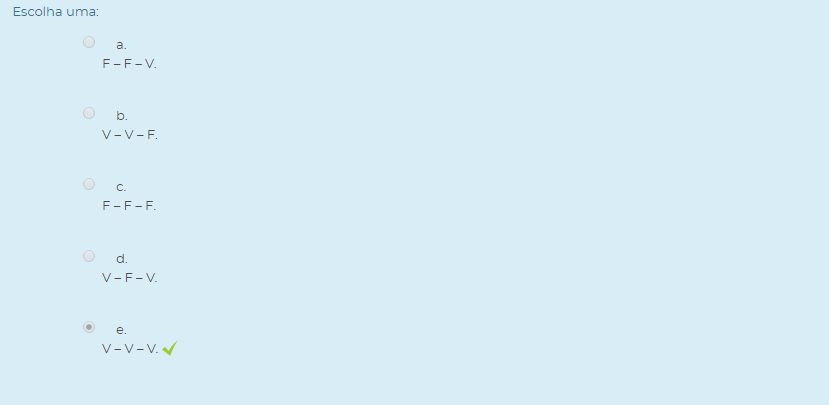 Analise as afirmações a seguir, julgue as afirmativas a seguir em (V) Verdadeiras ou (F) Falsas.