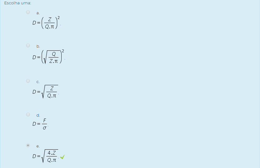 Assinale a alternativa que representa a equação que originará o diâmetro D deste parafuso.