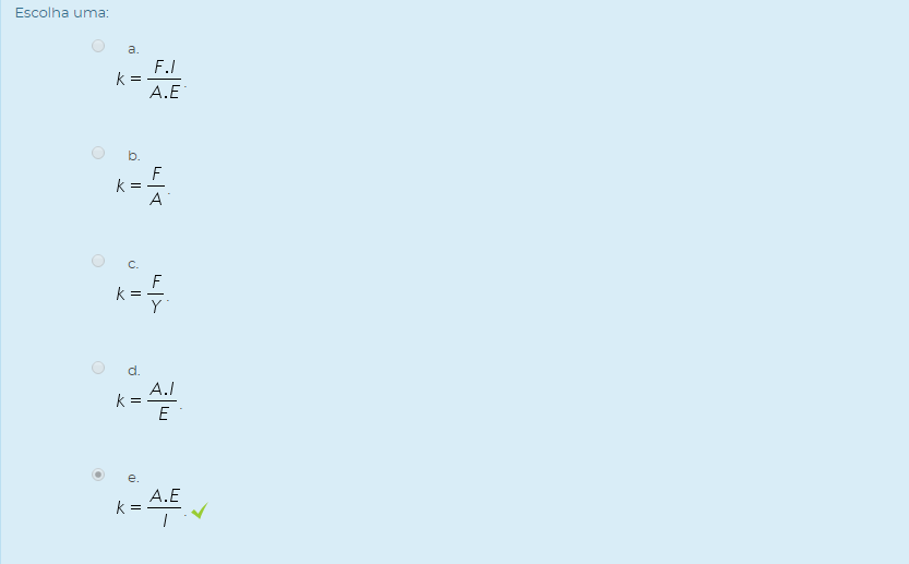 Assinale a alternativa que define corretamente a equação da constante de uma mola carregada axialmente.