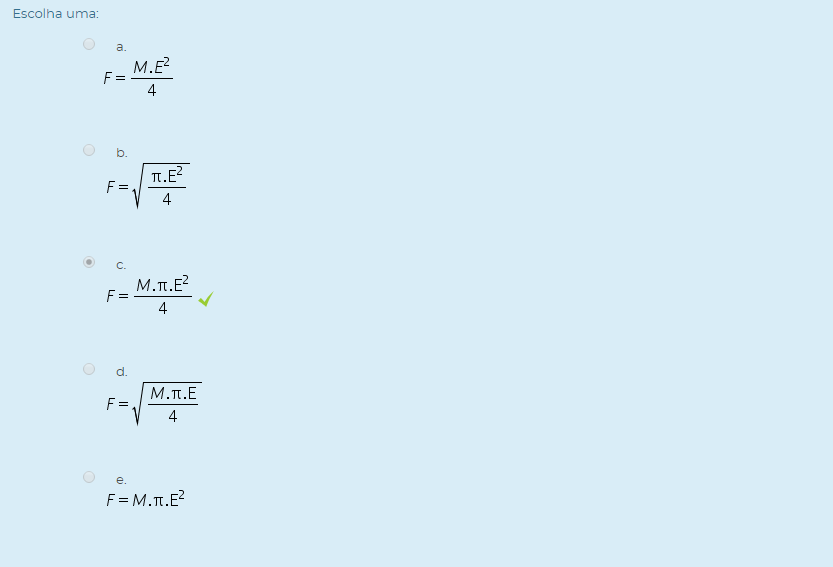 Assinale a alternativa que contempla corretamente a equação formulada.
