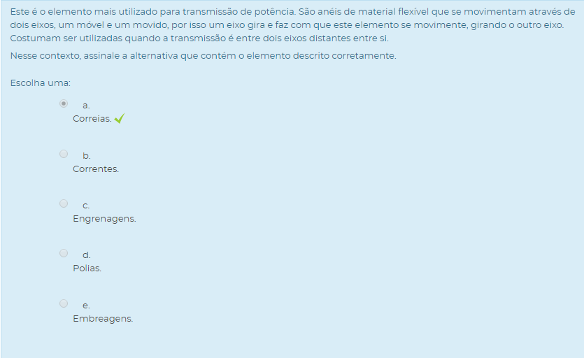 I - As correias são elementos muito utilizados na transmissão de potência.