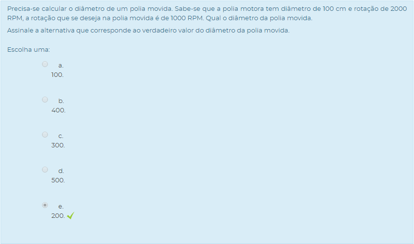 Assinale a alternativa que corresponde ao verdadeiro valor do diâmetro da polia movida.