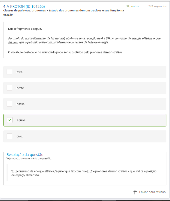 país não sofra com problemas decorrentes da falta de energia. O vocábulo destacado no enunciado pode ser substituído pelo pronome demonstrativo