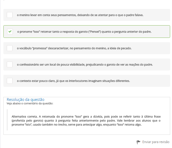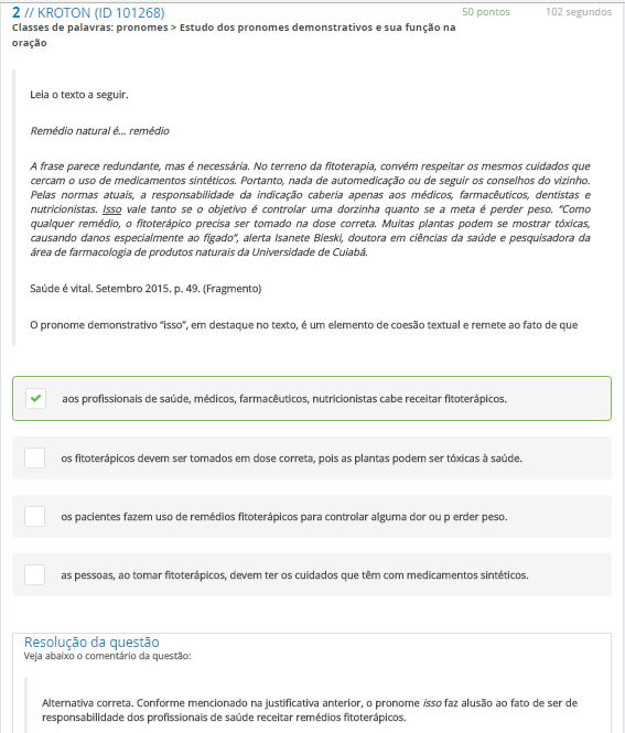 O pronome demonstrativo “isso”, em destaque no texto, é um elemento de coesão textual e remete ao fato de que: