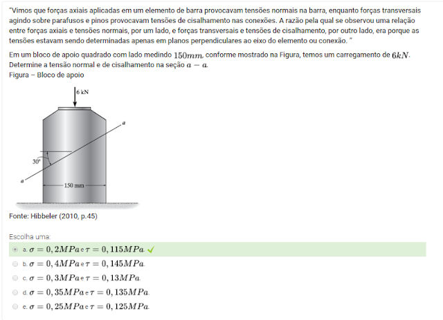 Resistência dos Materiais /UNIDADE DE ENSINO 3 - Encontro 2 /U3S2 - Atividade de Aprendizagem