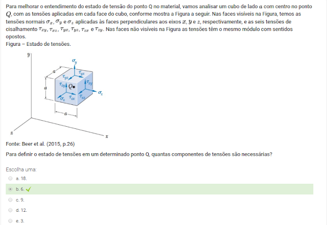 1 O estado geral de tensão em um ponto é determinado por seis componentes, três componentes de tensão normal e outras três componentes de tensão de cisalhamento. Este estado de tensão, na prática profissional, para facilitar a interpretação dos problemas reais, é simplificado a um estado plano de tensão.