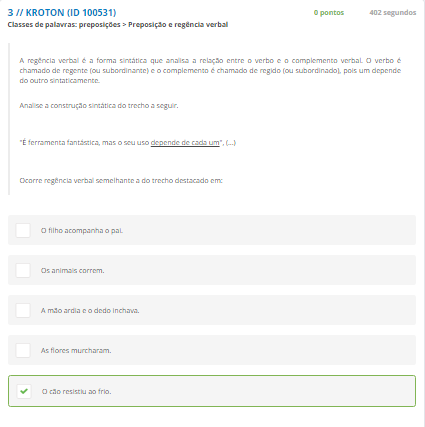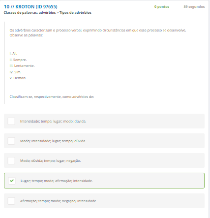 15 Leia as frases a seguir: I. Ele é demasiadamente preocupado. II. Antônia é a mais atenta de todas. III. José é tão exigente quanto justo. IV. Lara é a menos crítica das alunas. Os termos grifados são exemplos de flexão de grau de: Escolha uma: