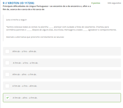 9 Leia o trecho a seguir: “Samira colocava todas as contas na planilha _____ planejar com cuidado a festa de casamento. Chamou para cerimônia parentes e _____. Depois de alguns dias, ela enviou mensagens a todos _____ agradecer o comparecimento". Assinale a alternativa que preenche corretamente as lacunas: Escolha uma: