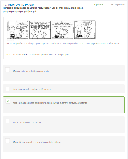 1 O uso da palavra mas, no segundo quadro, está correto porque: