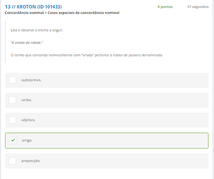 13 Leia o texto a seguir "a virada da cidade" o termo que concorda nominalmente com "virada" pertence à classe de palavra denominada