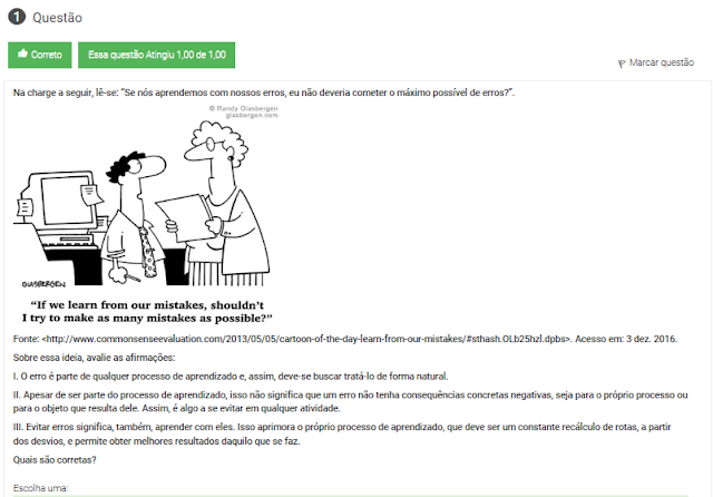 II. Apesar de ser parte do processo de aprendizado, isso não significa que um erro não tenha consequências concretas negativas, seja para o próprio processo ou para o objeto que resulta dele. Assim, é algo a se evitar em qualquer atividade.