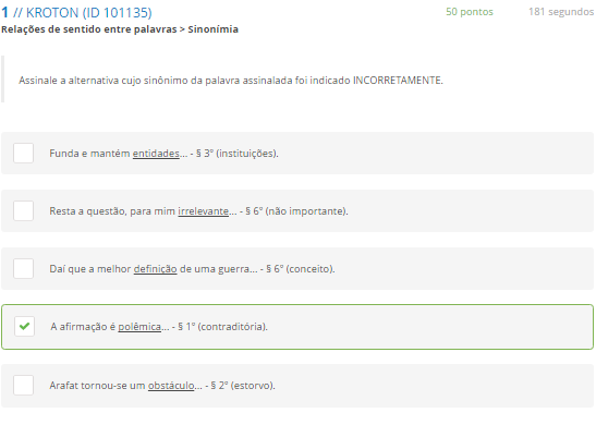1 assinale a alternativa cujo sinônimo da palavra assinalada foi indicado incorretamente