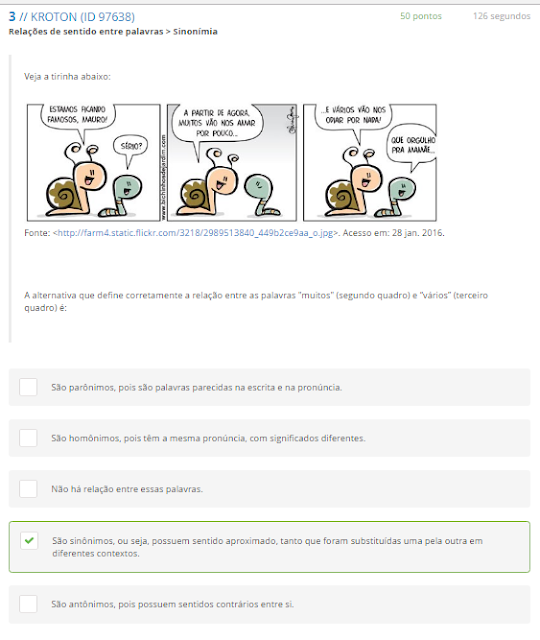 3 A alternativa que define corretamente a relação entre as palavras "muitos" (segundo quadro) e “vários” (terceiro quadro) é: