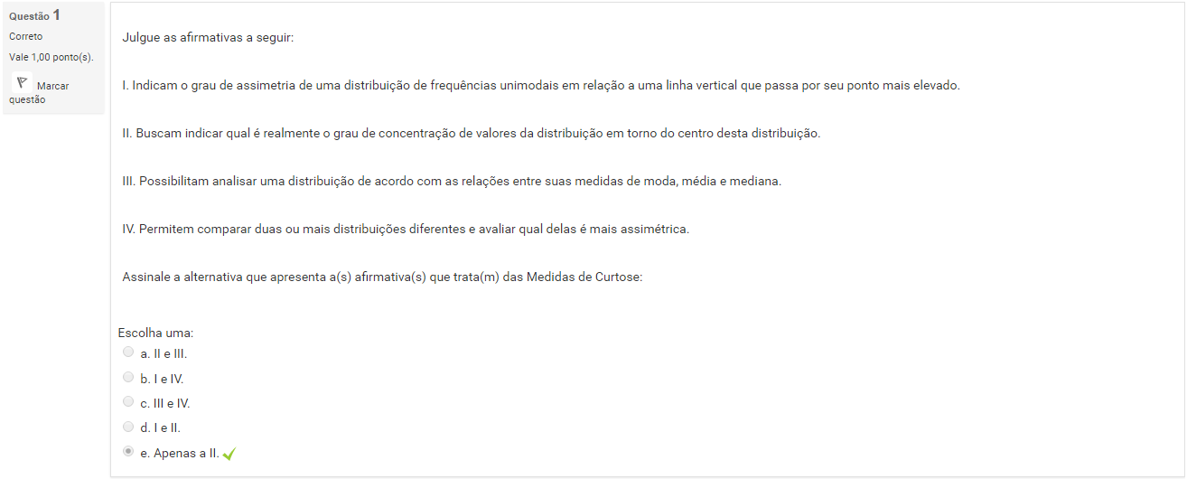 Assinale a alternativa que apresenta a(s) afirmativa(s) que trata(m) das Medidas de Curtose:
