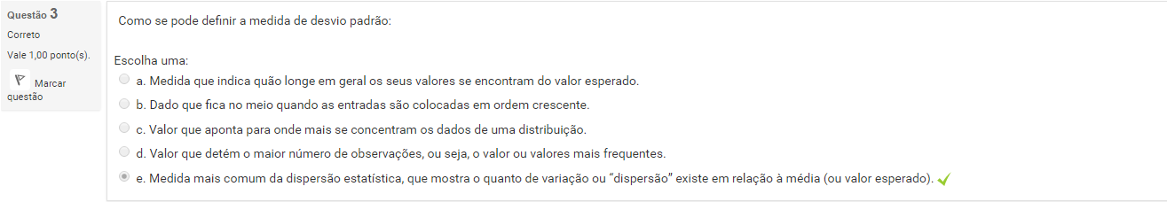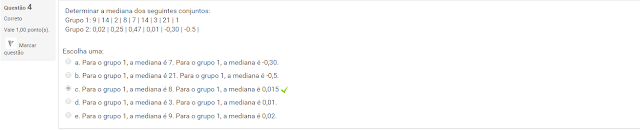 ( ) É o valor que se situa no meio da fila ordenada de valores, desde o mais baixo ao mais alto.