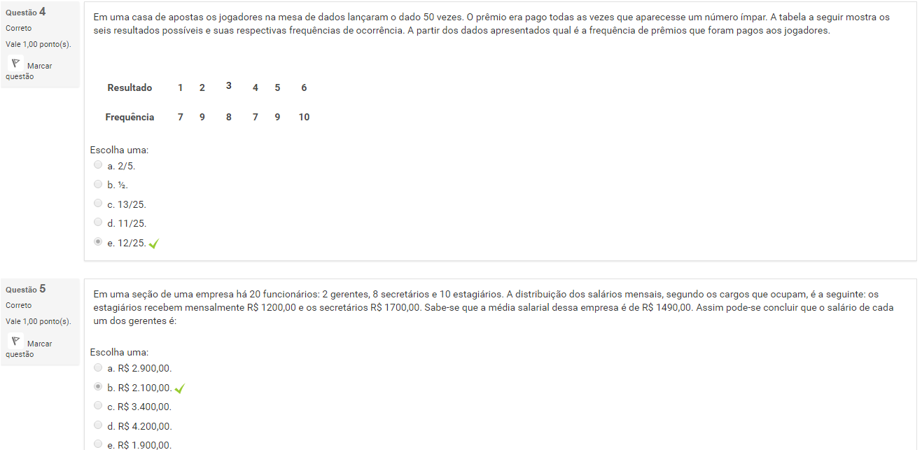 4 Em uma casa de apostas os jogadores na mesa de dados lançaram o dado 50 vezes. O prêmio era pago todas as vezes que aparecesse um número ímpar. A tabela a seguir mostra os seis resultados possíveis e suas respectivas frequências de ocorrência. A partir dos dados apresentados qual é a frequência de prêmios que foram pagos aos jogadores.