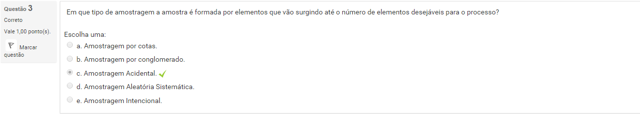 3 Em que tipo de amostragem a amostra é formada por elementos que vão surgindo até o número de elementos desejáveis para o processo?