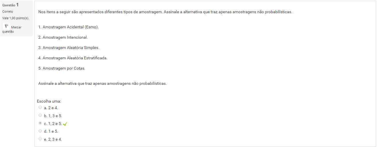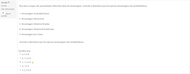 1 Nos itens a seguir são apresentados diferentes tipos de amostragem. Assinale a alternativa que traz apenas amostragens não probabilísticas.