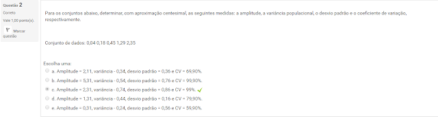 2 Para os conjuntos abaixo, determinar, com aproximação centesimal, as seguintes medidas: a amplitude, a variância populacional, o desvio padrão e o coeficiente de variação, respectivamente.