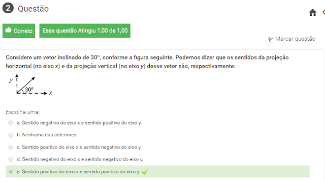 2 Considere um vetor inclinado de 30º, conforme a figura seguinte. Podemos dizer que os sentidos da projeção horizontal (no eixo x) e da projeção vertical (no eixo y) desse vetor são, respectivamente: