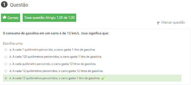 1 O consumo de gasolina em um carro é de 12 km/L. Isso significa que: