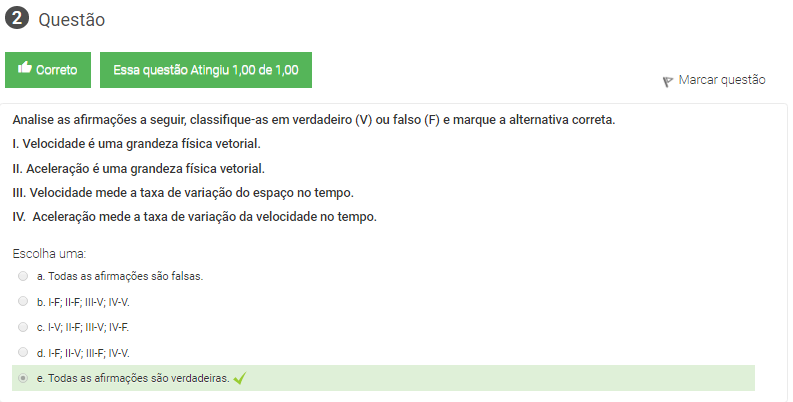 I. Velocidade é uma grandeza física vetorial.