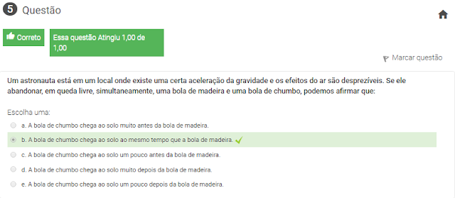 5 Um astronauta está em um local onde existe uma certa aceleração da gravidade e os efeitos do ar são desprezíveis. Se ele abandonar, em queda livre, simultaneamente, uma bola de madeira e uma bola de chumbo, podemos afirmar que: