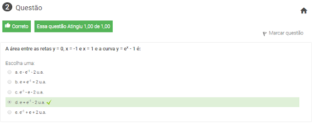 2 A área entre as retas y = 0, x = -1 e x = 1 e a curva y = ex - 1 é: