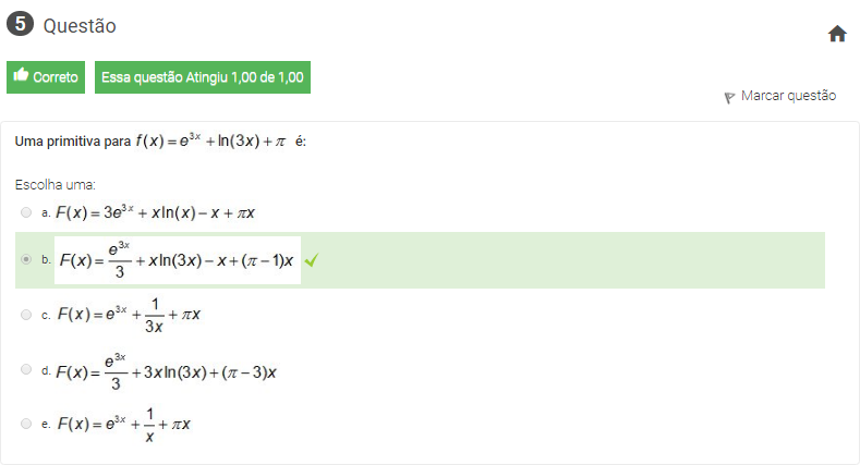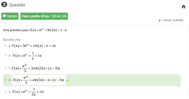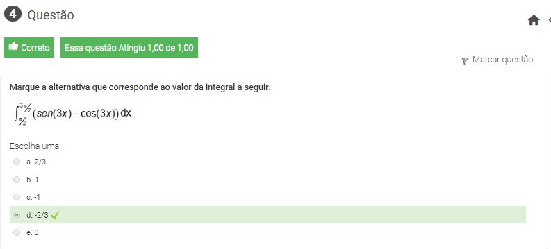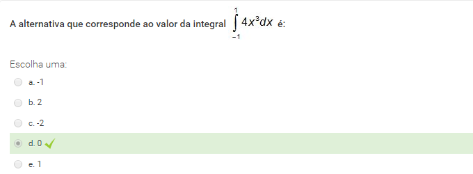 4 Marque a alternativa que corresponde ao valor da integral a seguir: