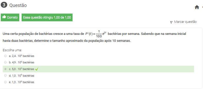bactérias por semana. Sabendo que na semana inicial havia duas bactérias, determine o tamanho aproximado da população após 10 semanas.