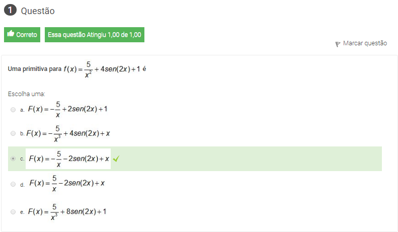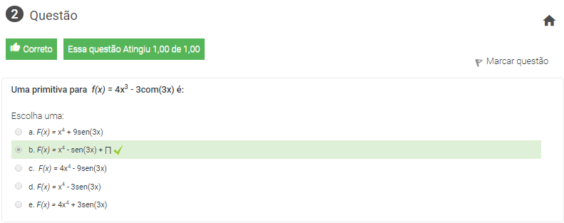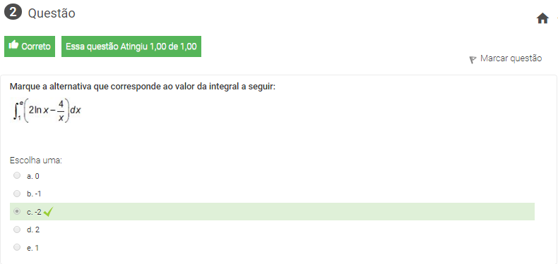 2 Marque a alternativa que corresponde ao valor da integral a seguir: