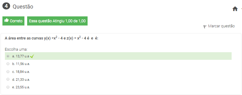4 A área entre as curvas y(x) =x2 - 4 e z(x) = x2 - 4 é e é: