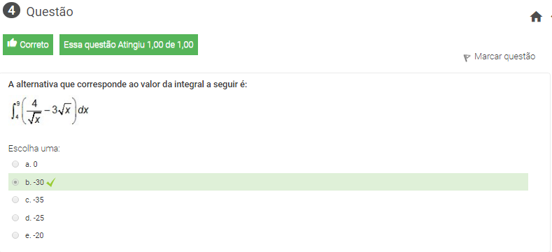 4 A alternativa que corresponde ao valor da integral a seguir é: