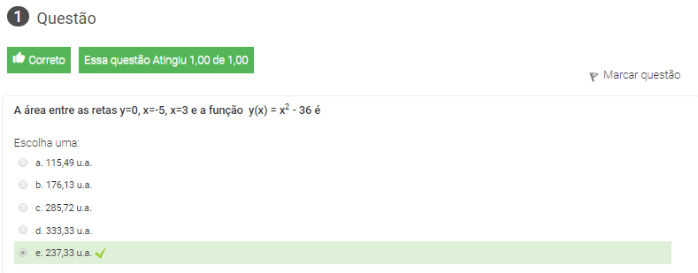 1 A área entre as retas y=0, x=-5, x=3 e a função y(x) = x2 - 36 é