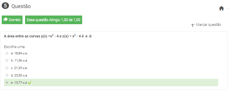 5 A área entre as curvas y(x) =x2 - 4 e z(x) = x2 - 4 é e é: