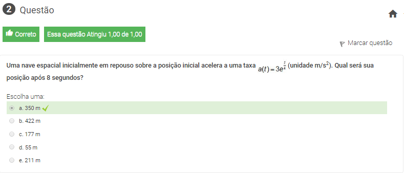 2 Uma nave espacial inicialmente em repouso sobre a posição inicial acelera a uma taxa