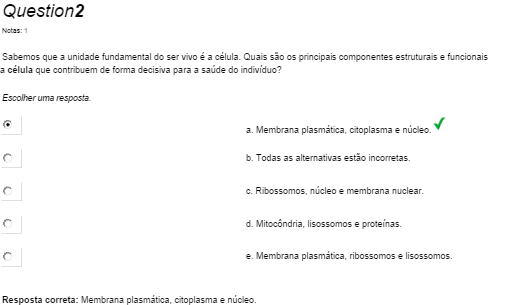 2 Sabemos que a unidade fundamental do ser vivo é a célula. Quais são os principais componentes estruturais e funcionais da célula que contribuem de forma decisiva para a saúde do indivíduo?