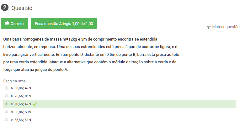a barra está presa ao teto por uma corda estendida. Marque a alternativa que contém a tração sobre