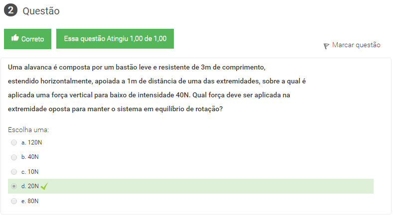 aplicada uma força vertical para baixo de intensidade 40N. Qual força deve ser aplicada na