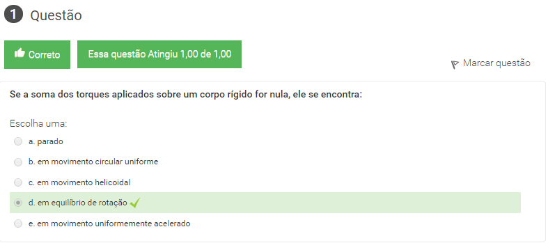 1 Se a soma dos torques aplicados sobre um corpo rígido for nula, ele se encontra: