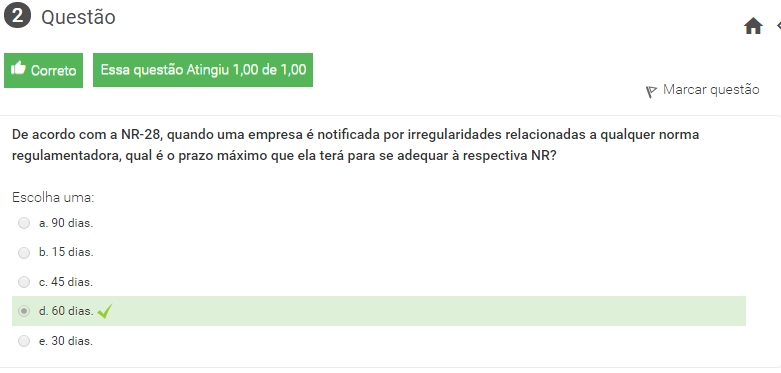 2 De acordo com a NR-28, quando uma empresa é notificada por irregularidades relacionadas a qualquer norma regulamentadora, qual é o prazo máximo que ela terá para se adequar à respectiva NR?