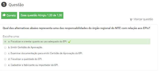 1 Qual das alternativas abaixo representa uma das responsabilidades do órgão regional do MTE com relação aos EPIs?