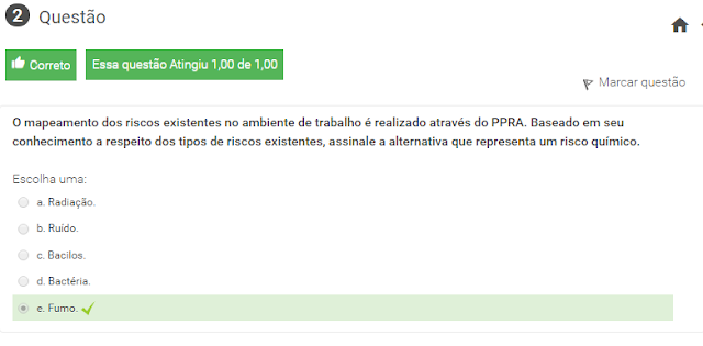 2 O mapeamento dos riscos existentes no ambiente de trabalho é realizado através do PPRA. Baseado em seu conhecimento a respeito dos tipos de riscos existentes, assinale a alternativa que representa um risco químico.