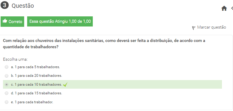 3 Com relação aos chuveiros das instalações sanitárias, como deverá ser feita a distribuição, de acordo com a quantidade de trabalhadores?