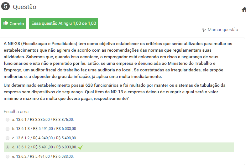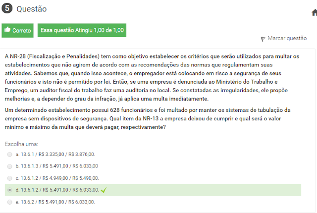 5 A NR-28 (Fiscalização e Penalidades) tem como objetivo estabelecer os critérios que serão utilizados para multar os estabelecimentos que não agirem de acordo com as recomendações das normas que regulamentam suas atividades. Sabemos que, quando isso acontece, o empregador está colocando em risco a segurança de seus funcionários e isto não é permitido por lei. Então, se uma empresa é denunciada ao Ministério do Trabalho e Emprego, um auditor fiscal do trabalho faz uma auditoria no local. Se constatadas as irregularidades, ele propõe melhorias e, a depender do grau da infração, já aplica uma multa imediatamente.