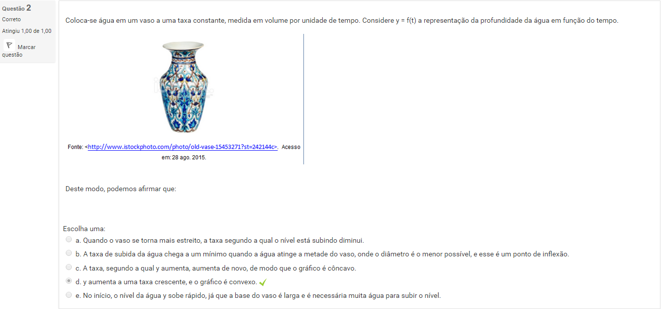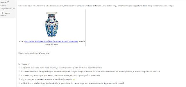 2 Coloca-se água em um vaso a uma taxa constante, medida em volume por unidade de tempo. Considere y = f(t) a representação da profundidade da água em função do tempo.