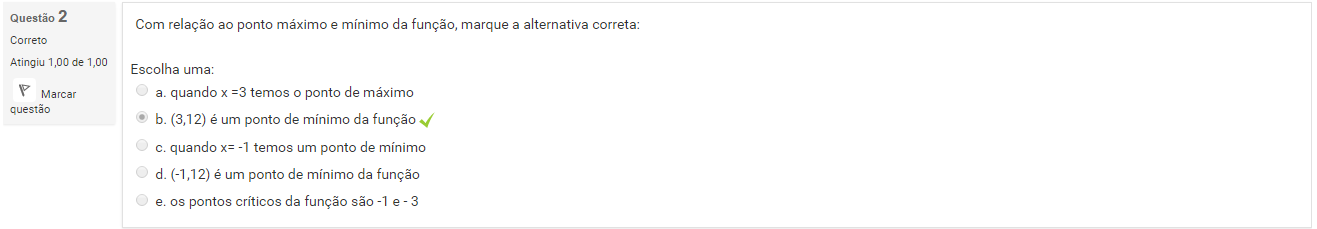 2 Com relação ao ponto máximo e mínimo da função, marque a alternativa correta: