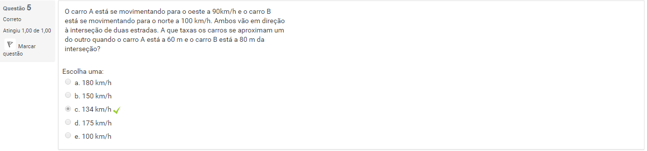 do outro quando o carro A está a 60 m e o carro B está a 80 m da