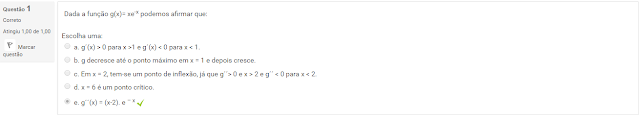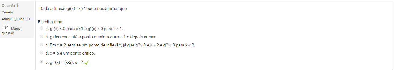 1 Dada a função g(x)= xe-x podemos afirmar que: